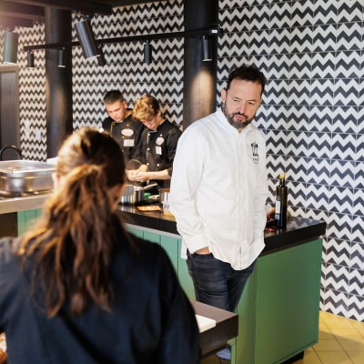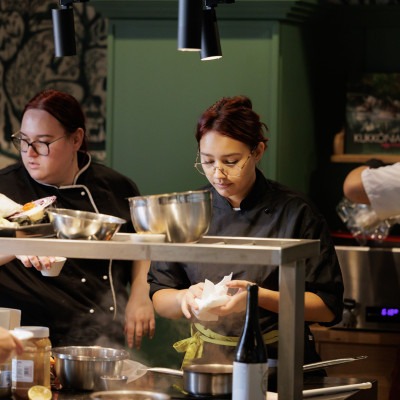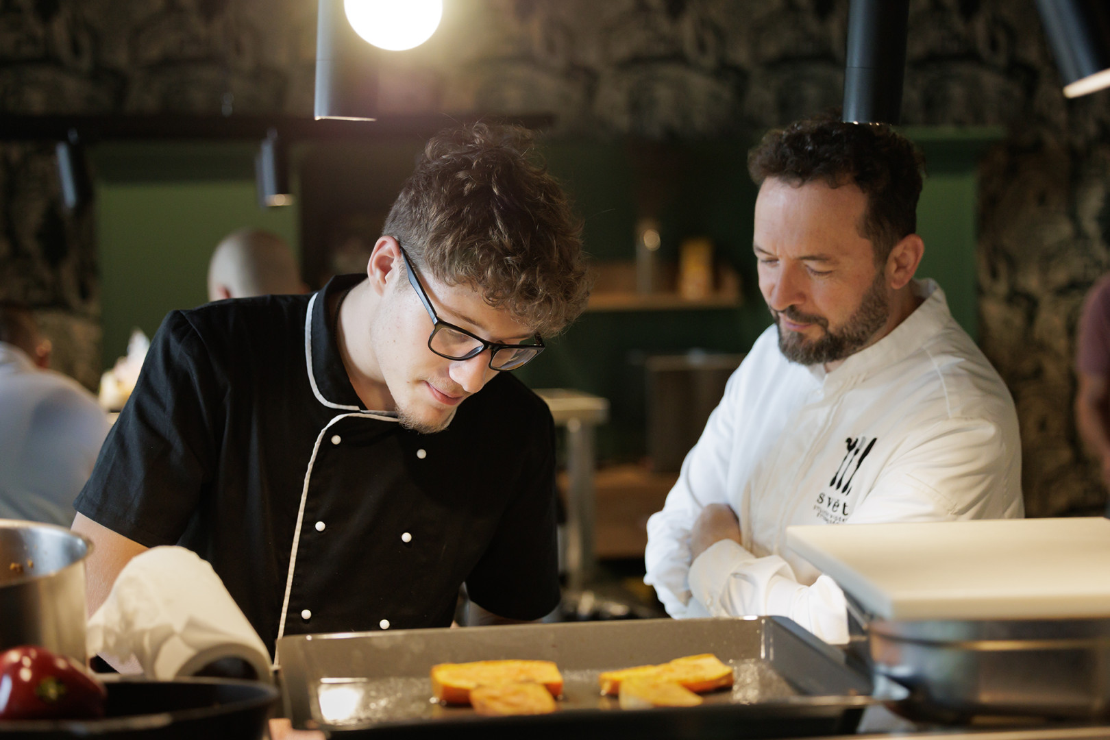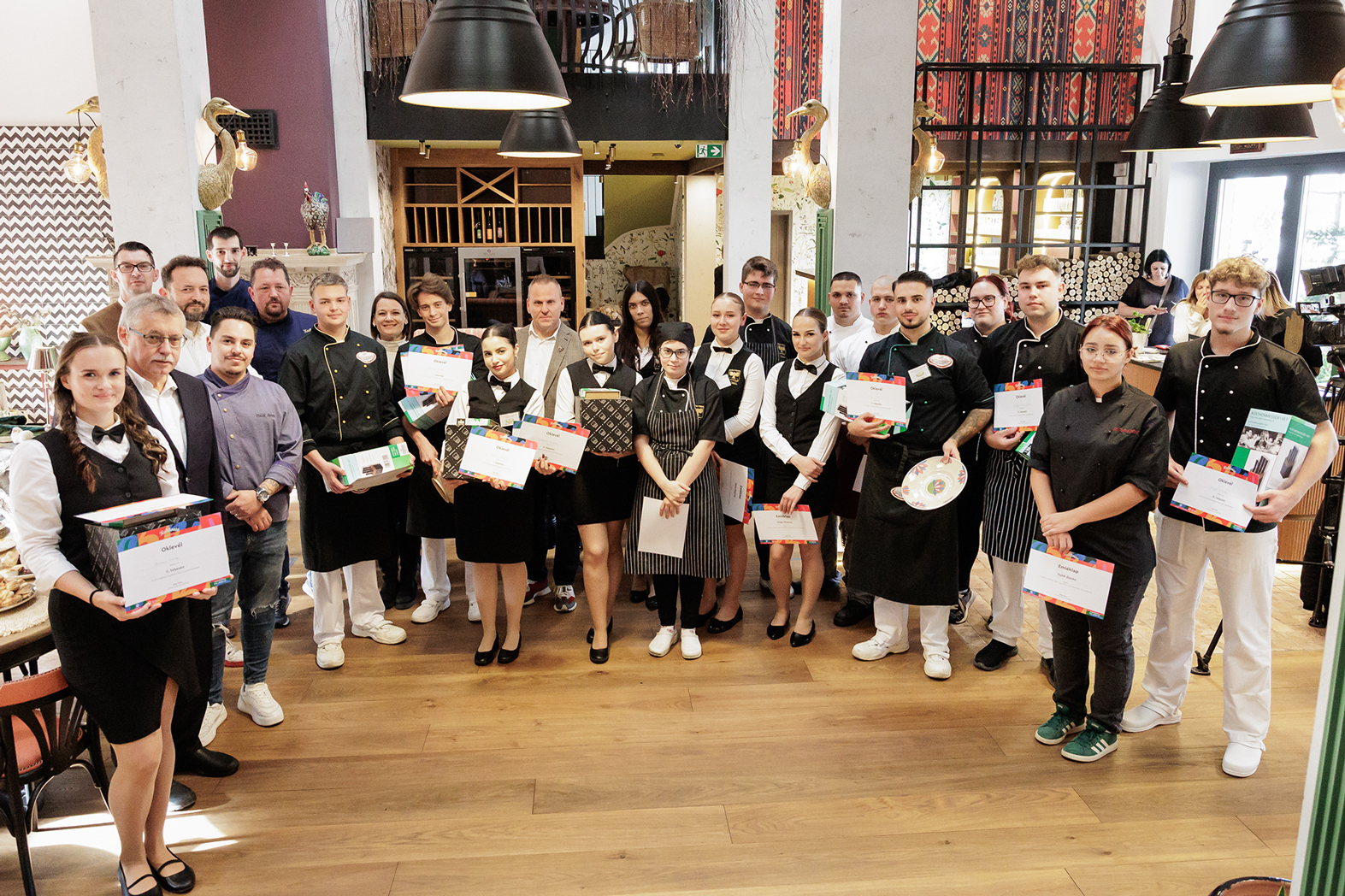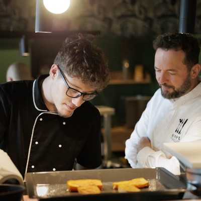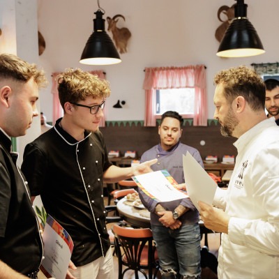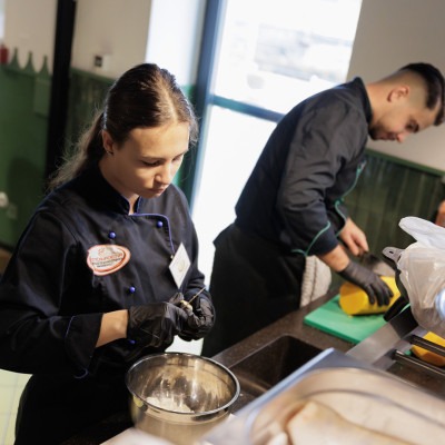 – „Dvakrát som viedol školenie pre študentov, kde sme sa zamerali na trojchodové menu. Prvýkrát sme sa venovali mäsám, druhýkrát prílohám. Snažili sme sa myslieť lokálne a sezónne – pracovali sme s tekvicou a batatmi a ukázali sme, ako sa dajú tieto suroviny spracovať rôznymi technológiami. Študenti sa naučili pracovať s chuťami a textúrami – to bolo hlavným cieľom. Boli veľmi šikovní a nadšení,“ – povedal Péter Czucz, kreatívny šéfkuchár reštaurácie Villa Rosa.