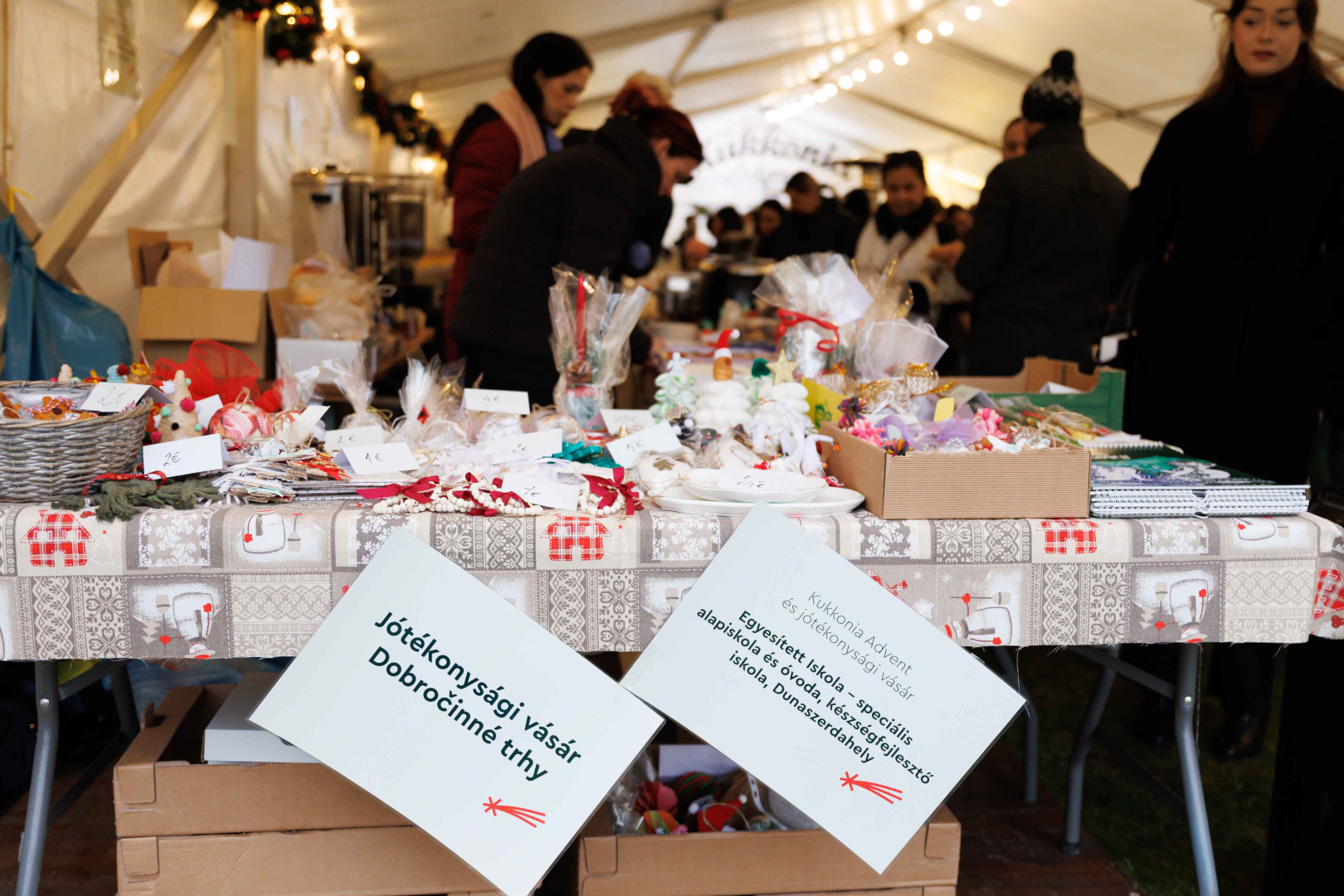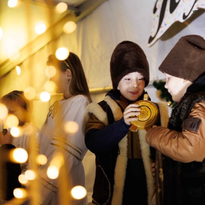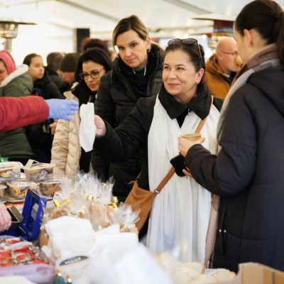 Na nádvorí múzea prebiehali od popoludnia do večera adventné dobročinné trhy, na ktorých pedagógovia a rodičovské komunity troch podporovaných dunajskostredských škôl ponúkali svoje výrobky. Varené víno, horúci jablkový mušt, kvalitné čaje, pagáče, vianočné koláče a obľúbený domáci závin vytvárali nielen chuťový, ale aj komunitný zážitok.