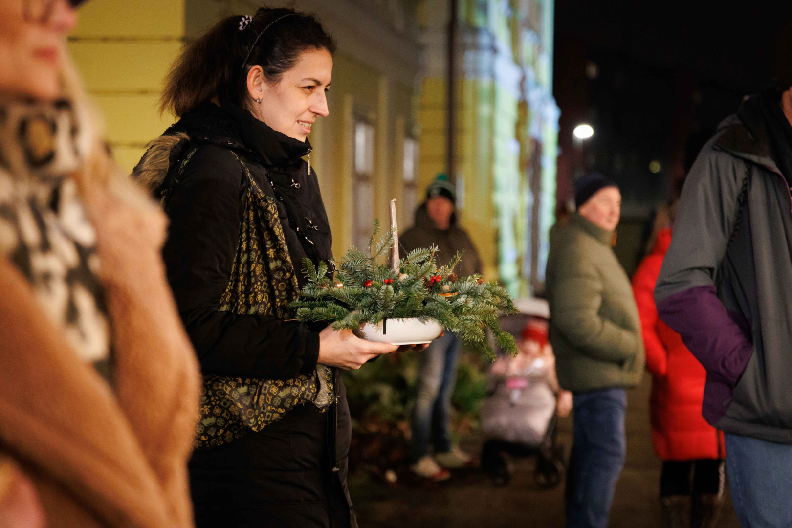 S príchodom tmy dodala priestoru nový rozmer adventná svetelná projekcia, realizovaná v spolupráci s výtvarníkom a vizuálnym umelcom Gáborom Szűcsom. Hudba, rozhovory a živý ruch vytvorili atmosféru, ktorá je v dnešnom digitálnom svete čoraz vzácnejšia – skutočné stretnutia, dlhé rozhovory, pozornosť a empatia.