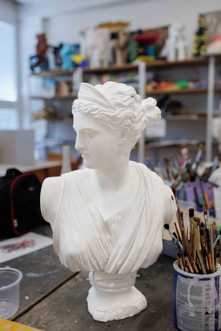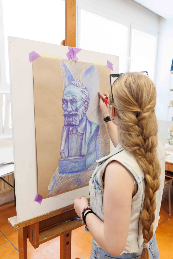 „Prvý deň sme po krátkom úvode začali pracovať v troch ateliéroch – v sekcii kresby, sochárstva a maľby. Kresliari začali zátiším, sochári modelovali ruky z hliny a vytvárali priestorové kompozície, maliari si pripravovali vlastné farby a následne maľovali zátišie. Druhý deň bol venovaný portrétu – účastníci kreslili a maľovali bustu, lebku aj živý model rôznymi technikami: ceruzou, uhlíkom a suchým pastelom, pokročilejší ich mohli kombinovať. Záverečný deň patril figurálnej kresbe, ktorá je už komplexnejšou úlohou. Počas celého kurzu prebiehali vo všetkých sekciách priebežné konzultácie.“